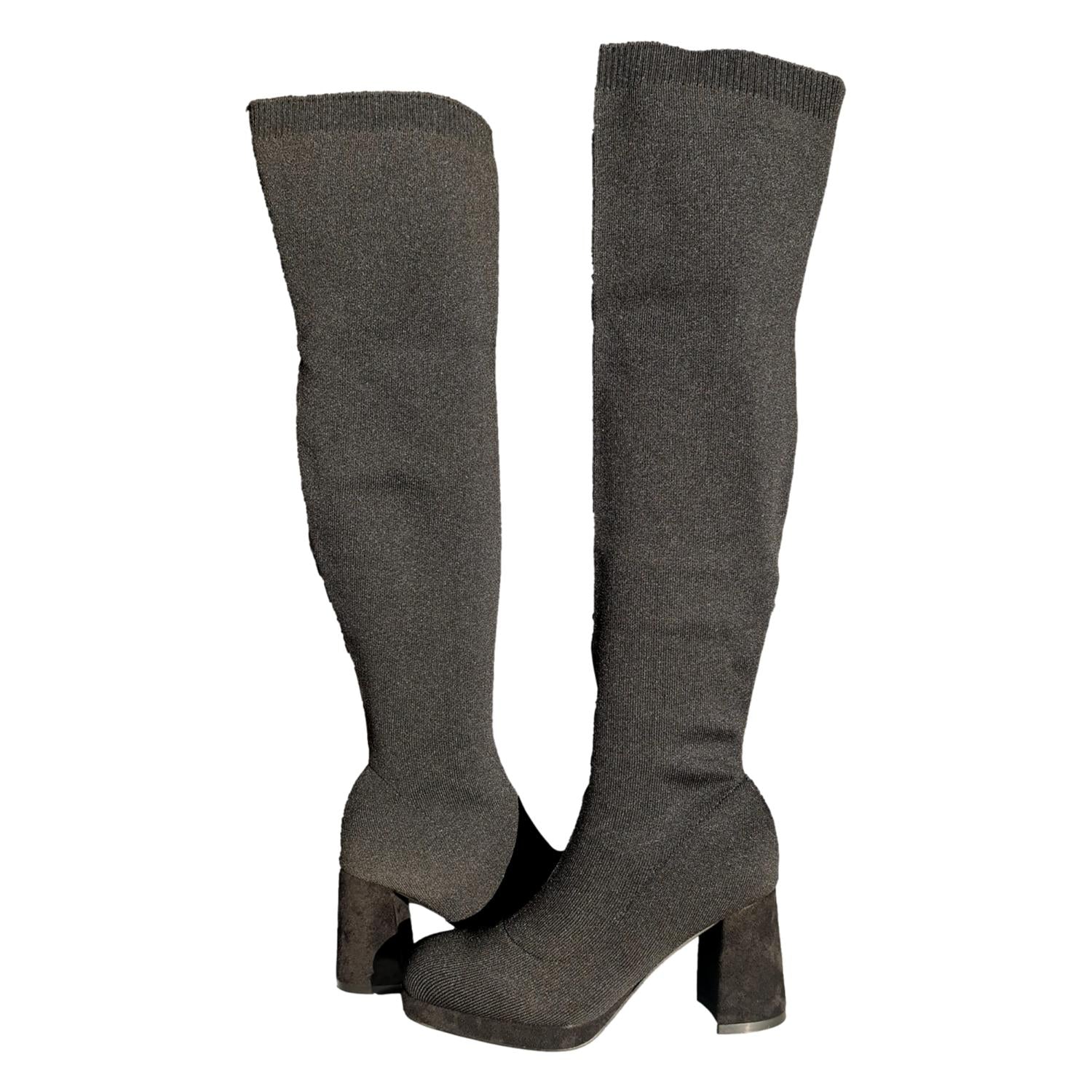 Bota de Tacon para Mujer Comodos de Material Elastico y Ajustable Sin Cremallera Otoño Invierno