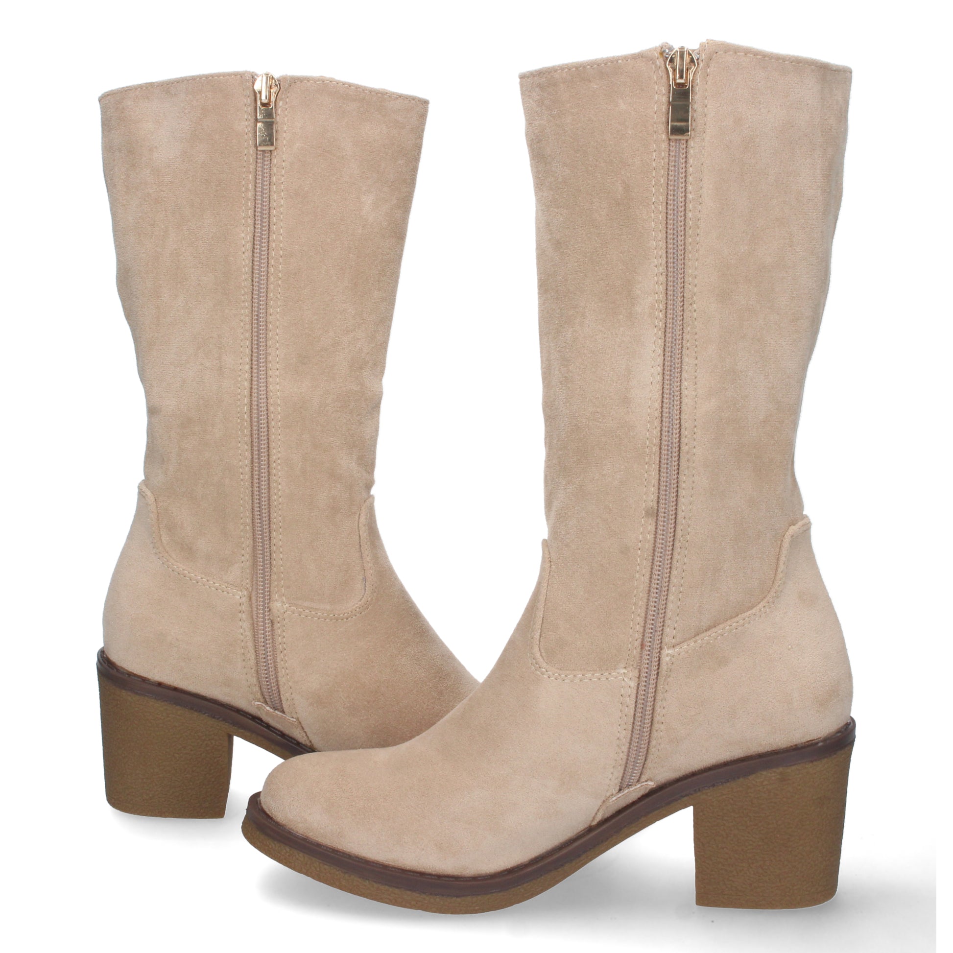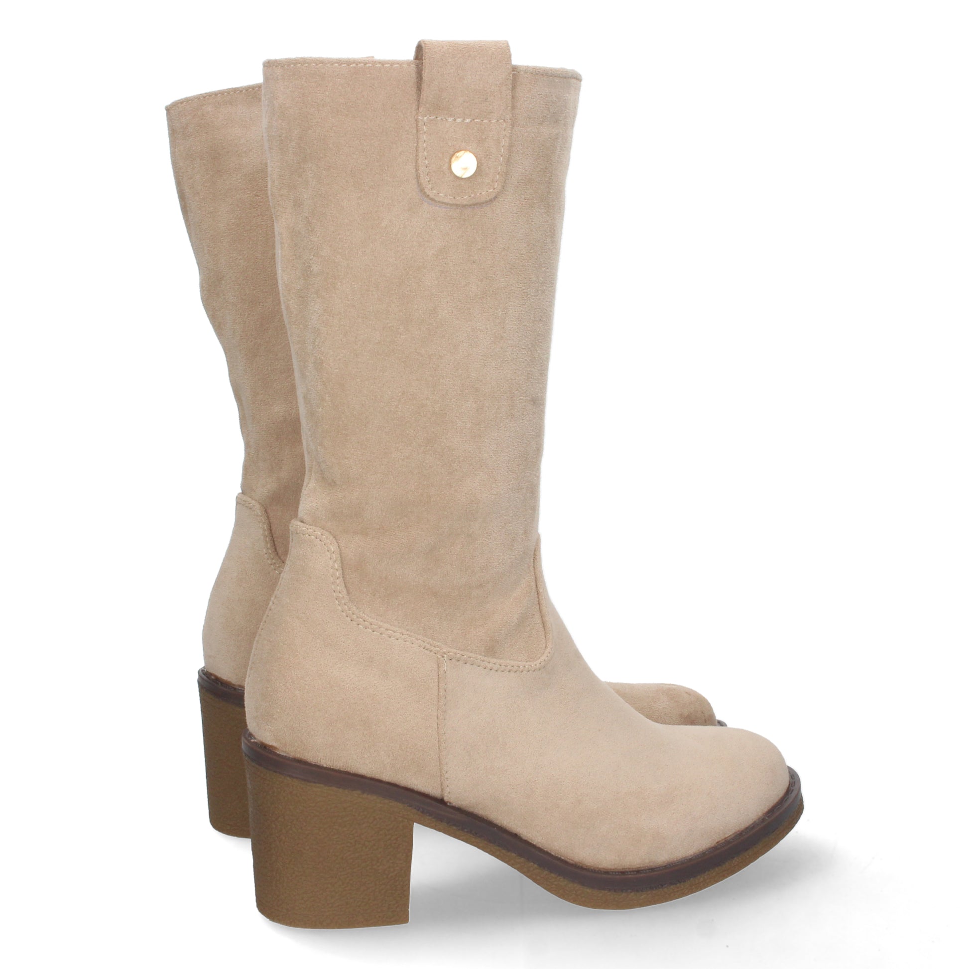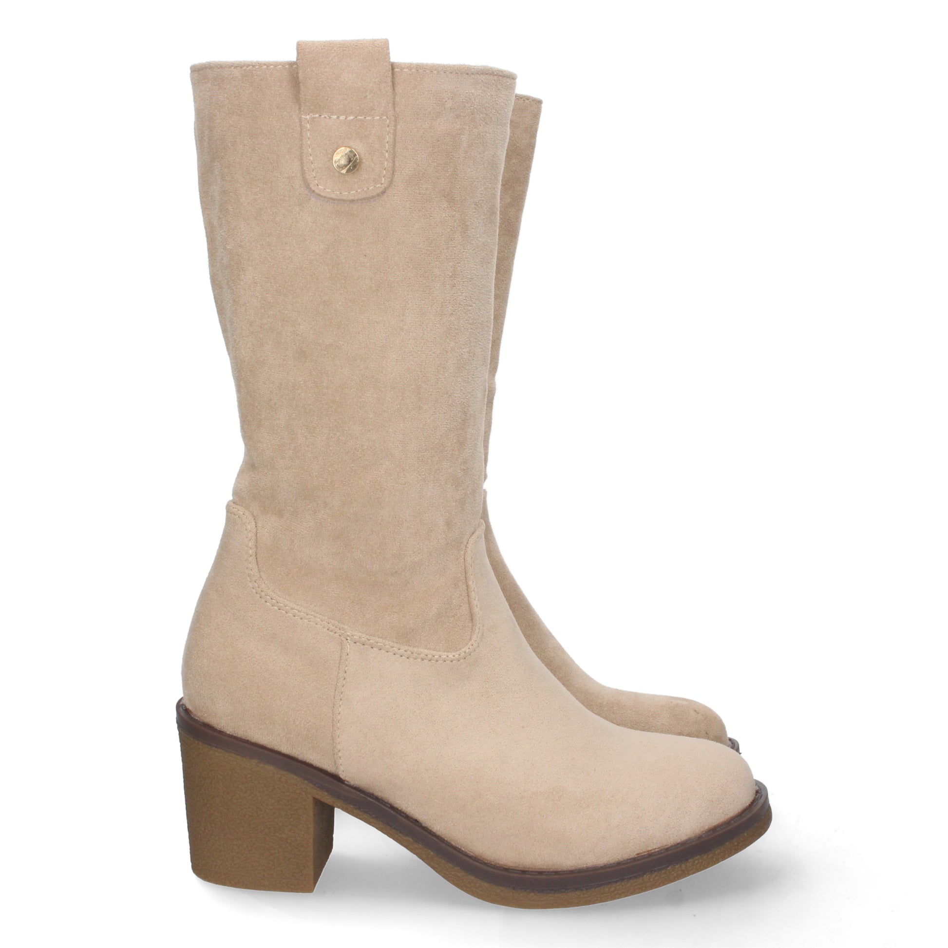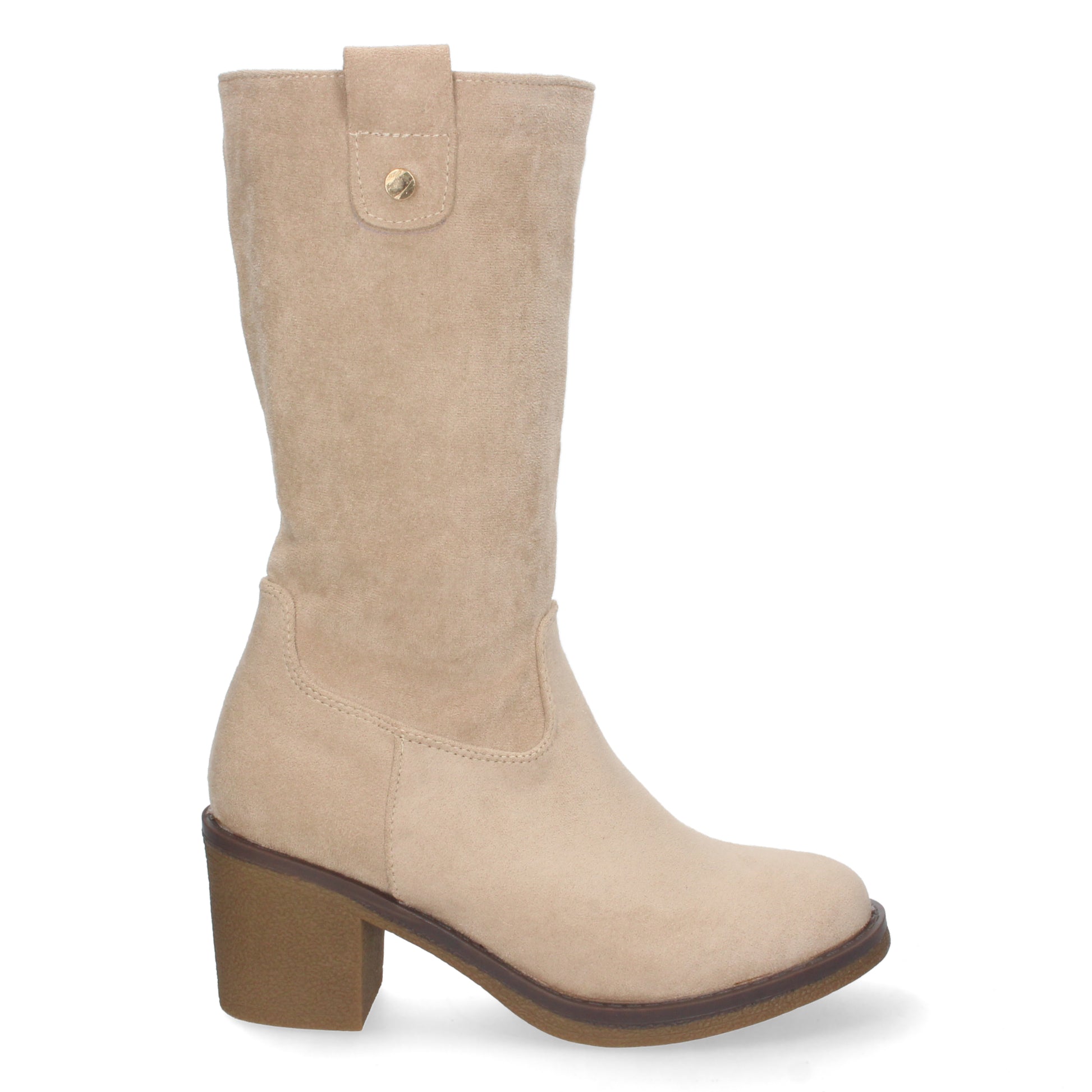 Bota de Tacón para Mujer Comoda con Estampado Liso Tachuela en Caña y Cierre de Cremallera Otoño Invierno