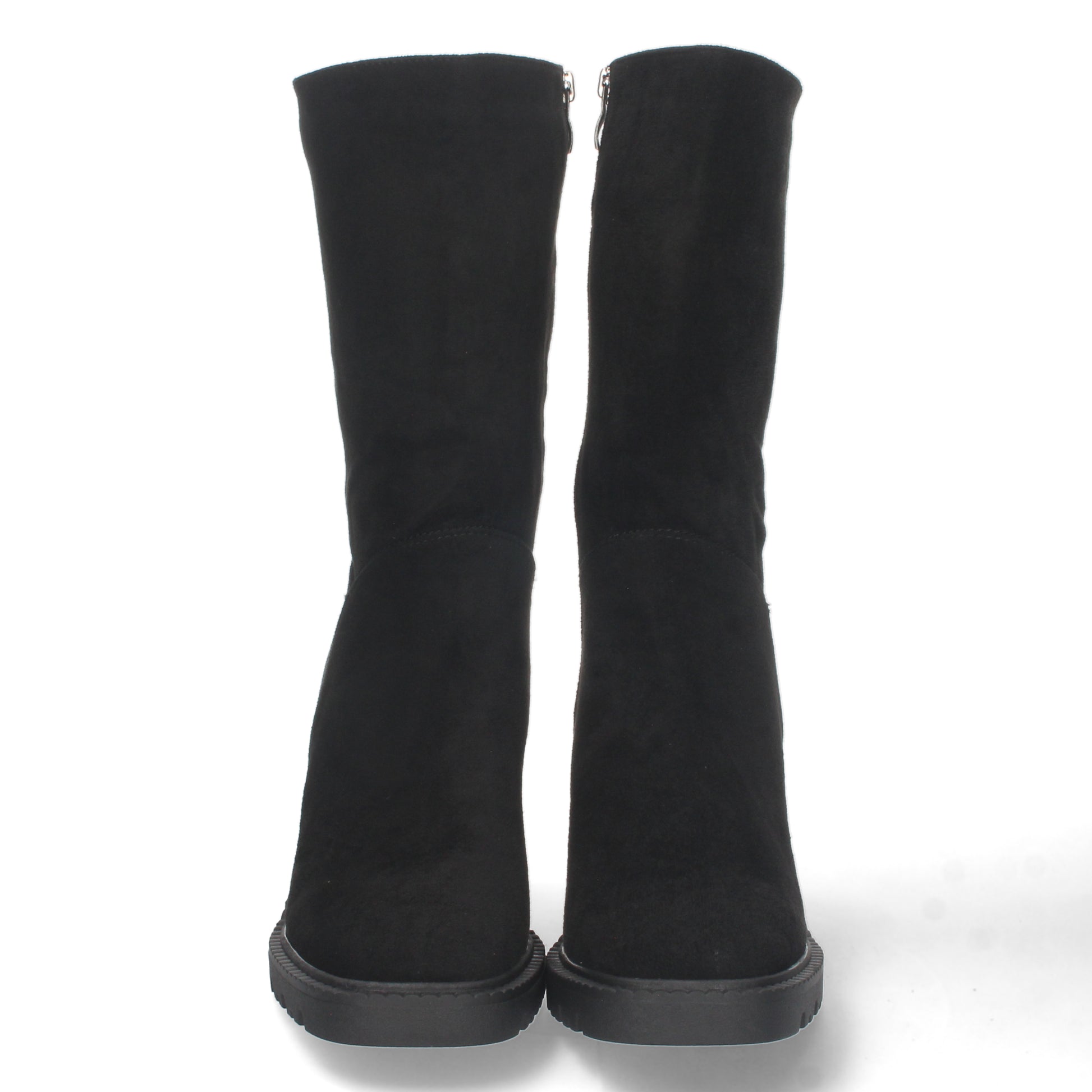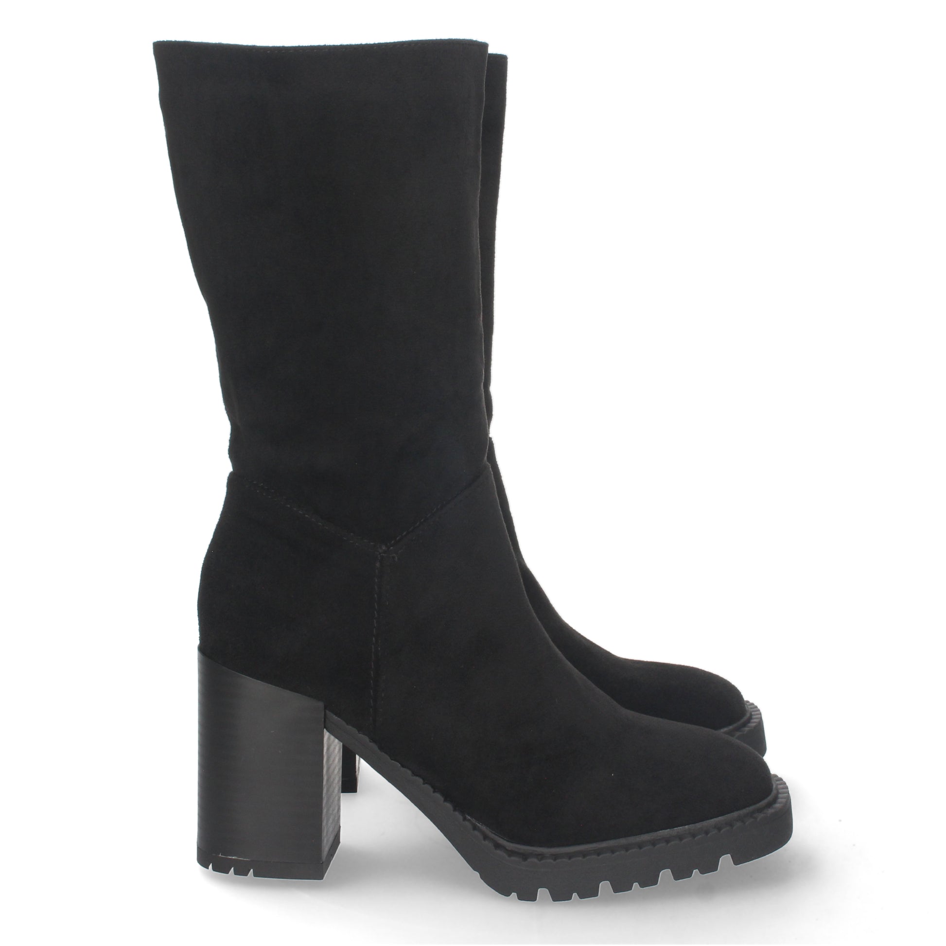Bota de Tacon para Mujer Comodas con Punta Redonda Estampado Liso y Cierre de Cremallera Otoño Invierno
