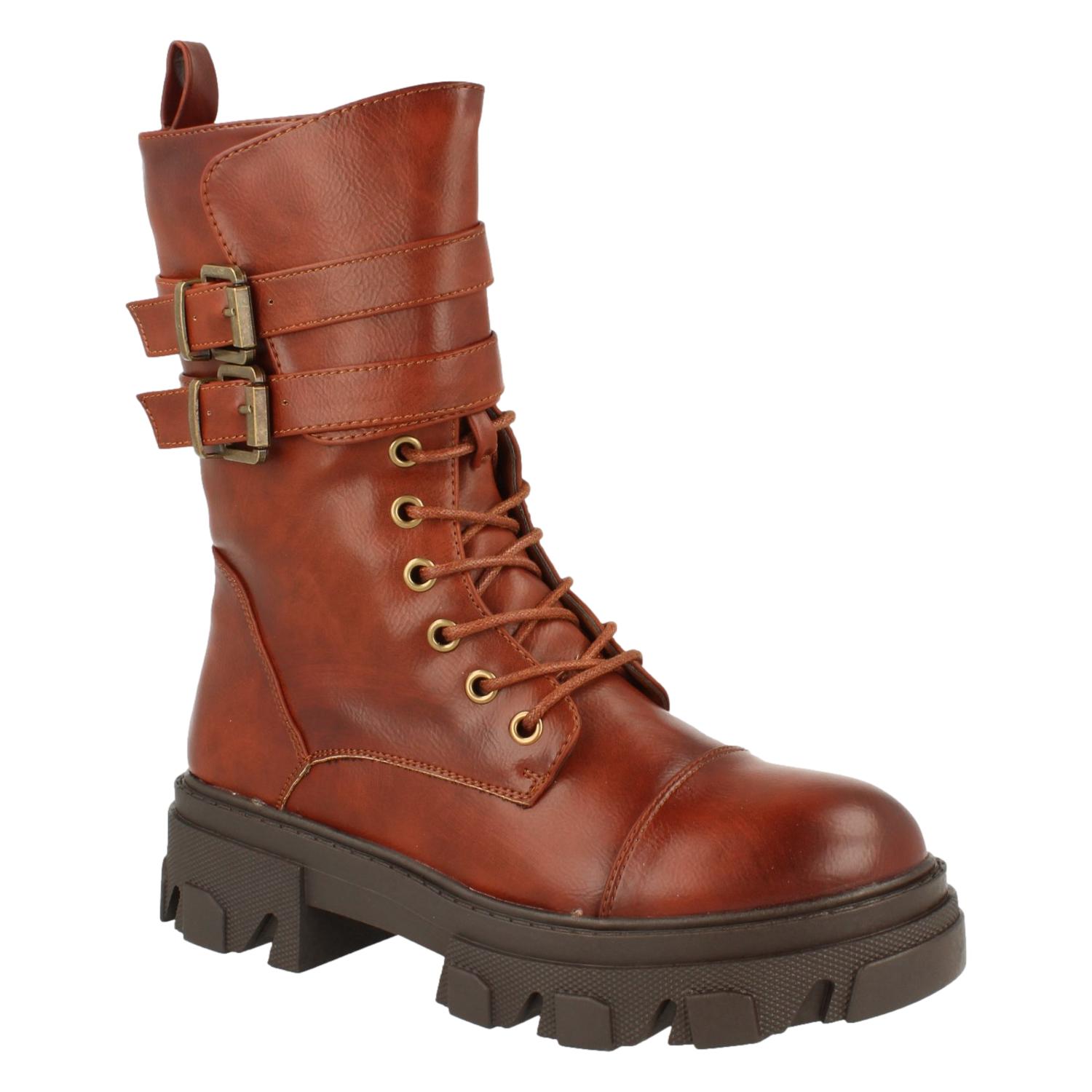 Bota de Plataforma para Mujer con Suela Dentada Tiras con Hebillas y Cierre de Cordones Otoño Invierno