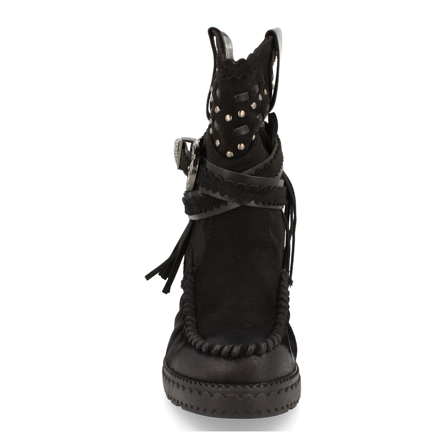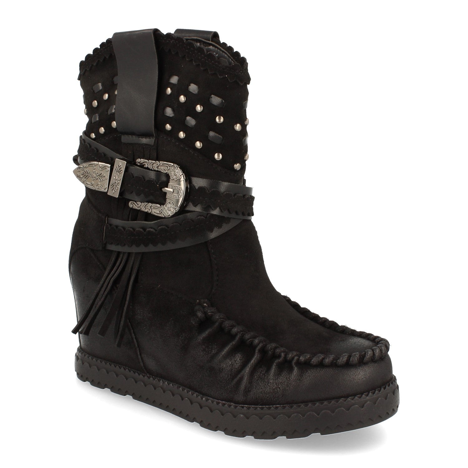 Bota de Estilo Indio Correas con Hebilla Flecos en Caña Cuña Interior y Cierre de Cremallera Otoño Invierno