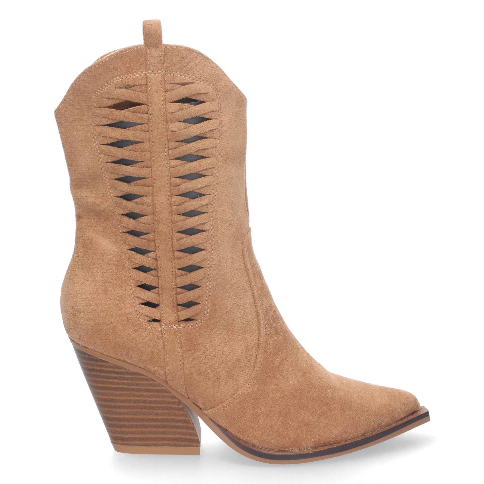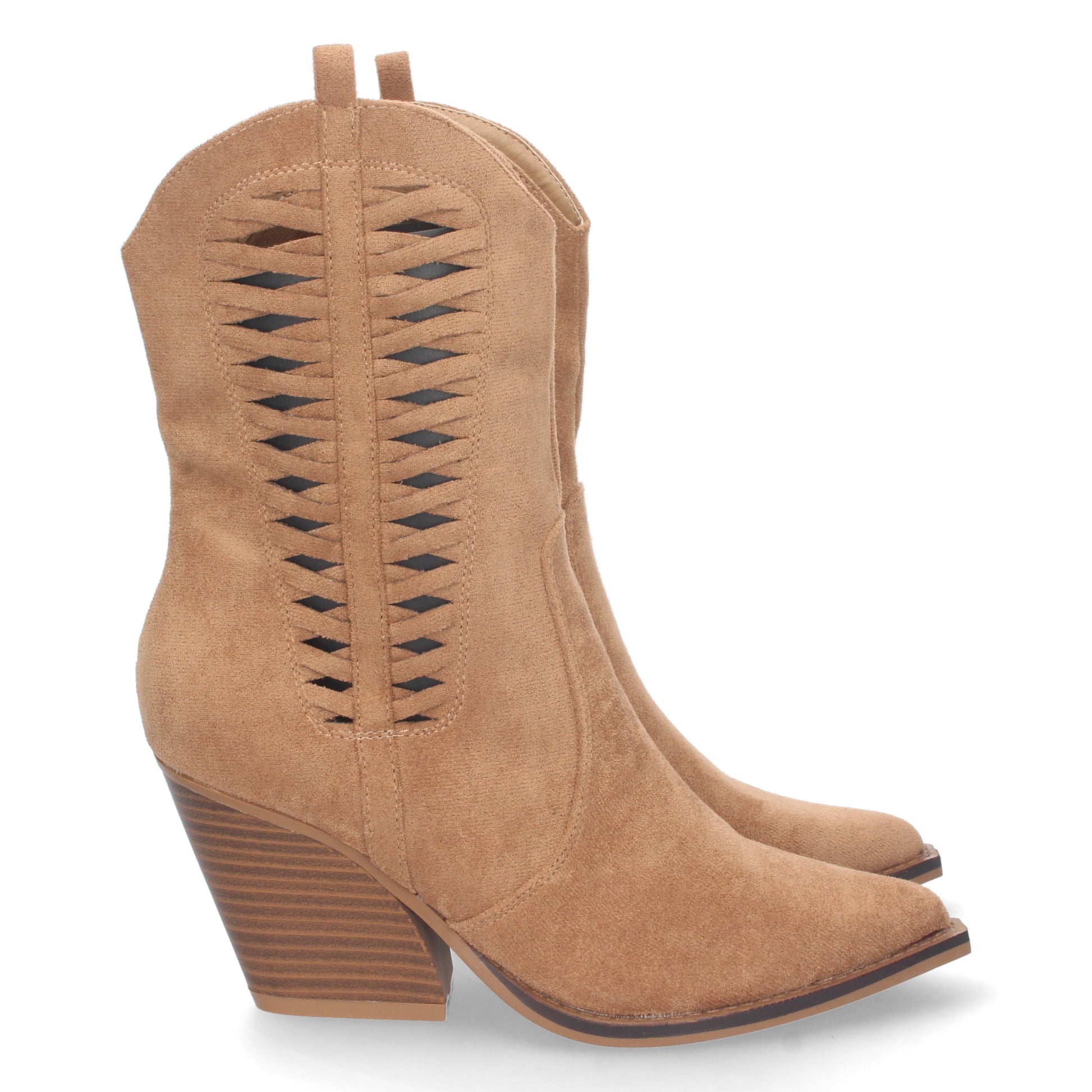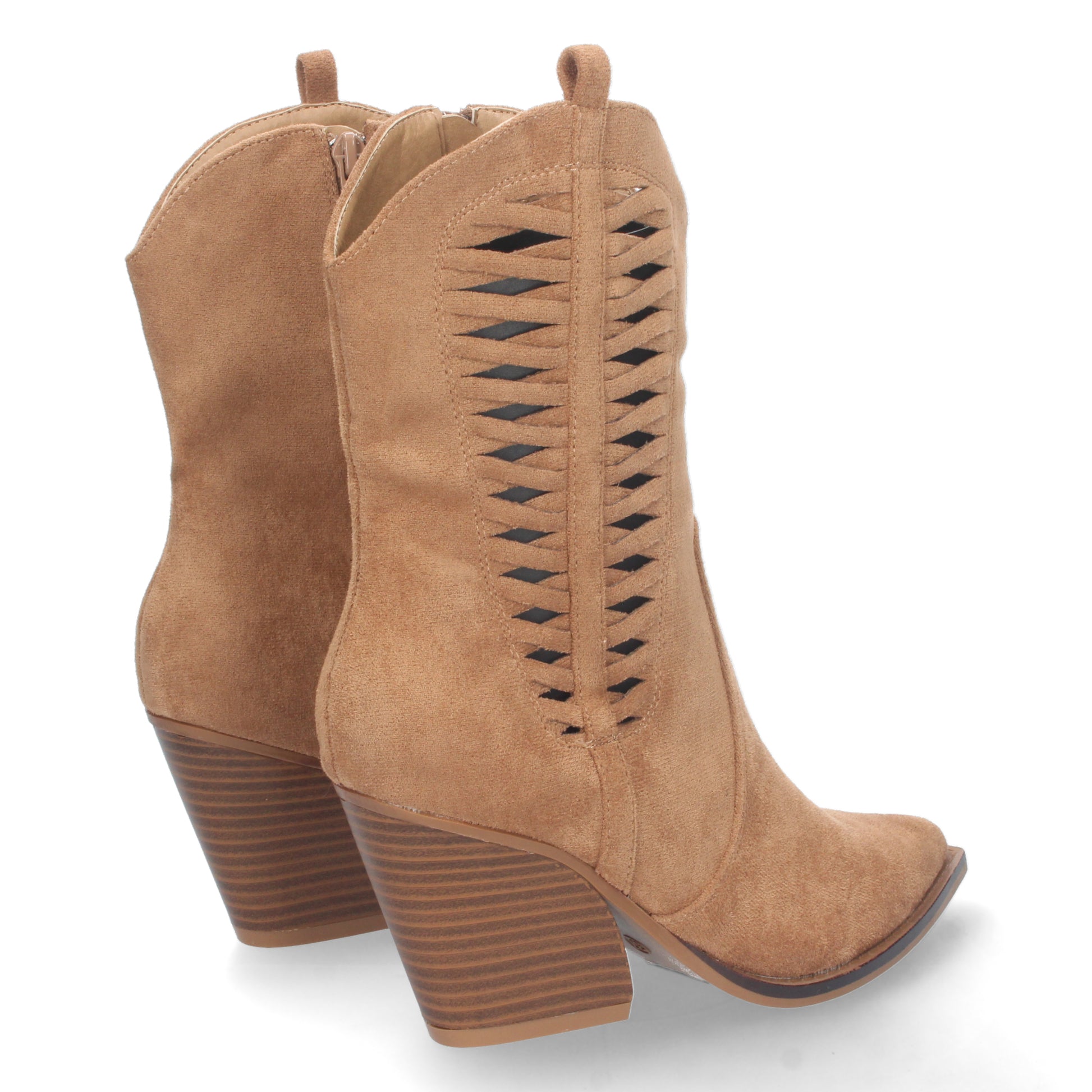 Bota de Tacon Campero para Mujer Comoda con Punta Fina Calados en Caña y Cierre de Cremallera Primavera Verano