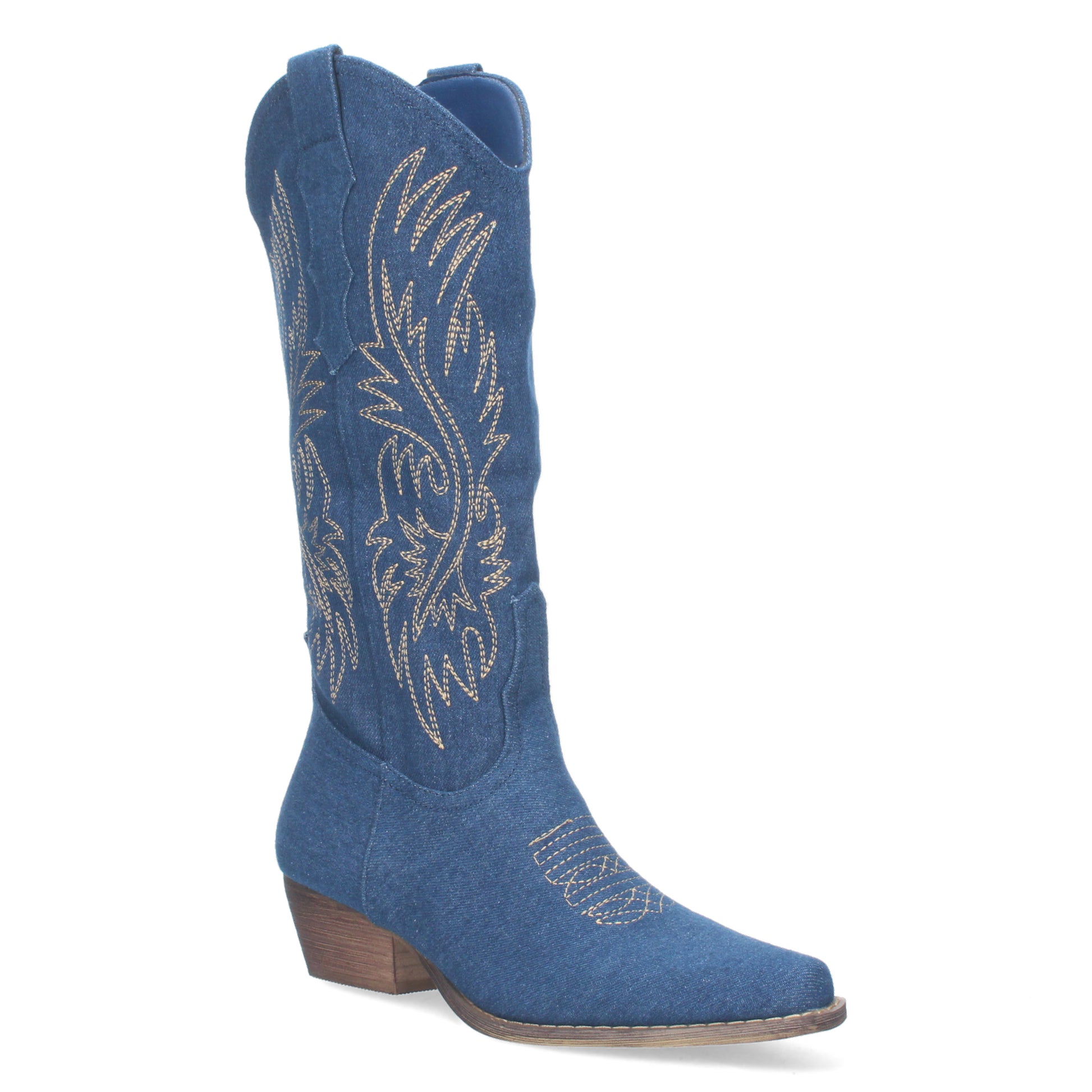 Bota campera con tacón y bordado dorado en la cañay en el empeine est�tico y tradicional estilo vaquero. La cañamide 34cm