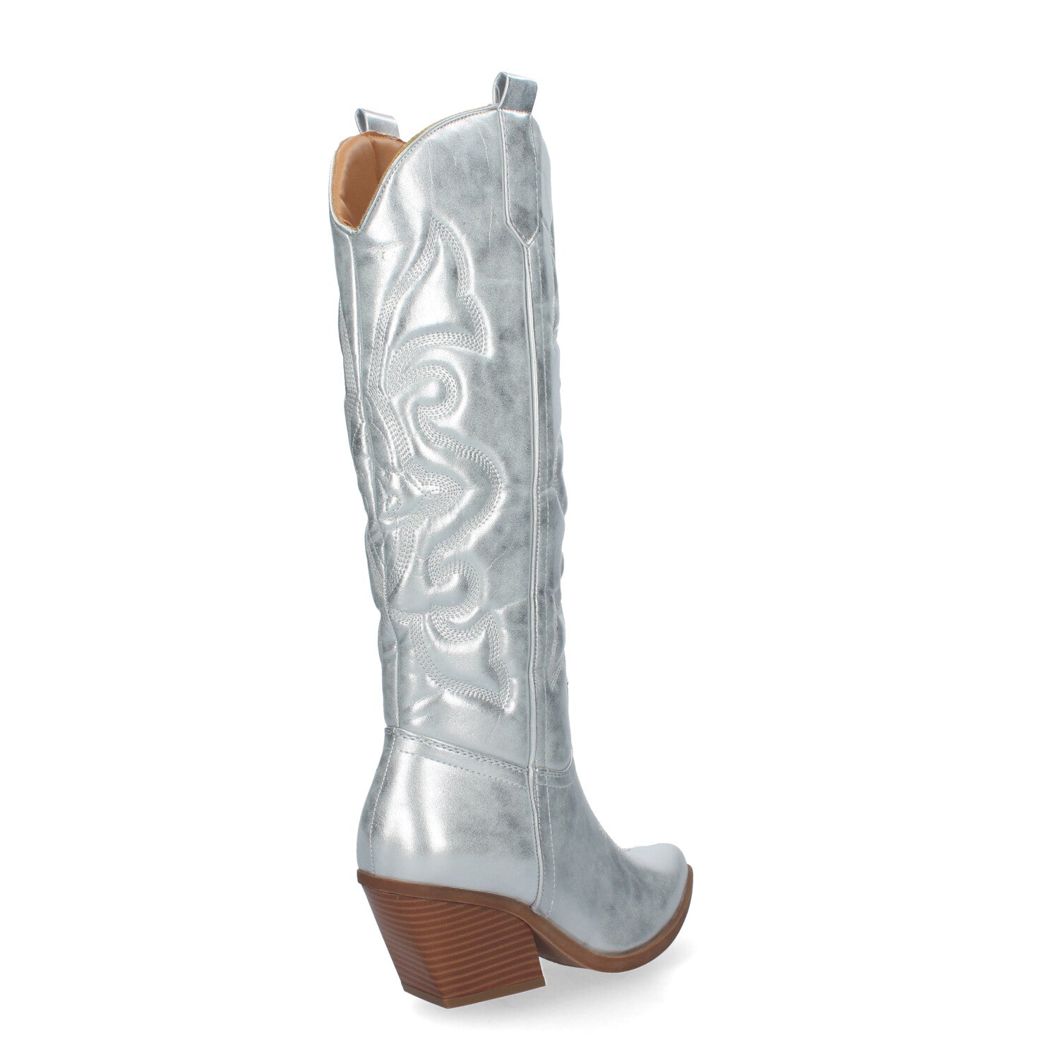 Bota para mujer con tacon cubano con grabado en cañay en la pala estilo cowboy