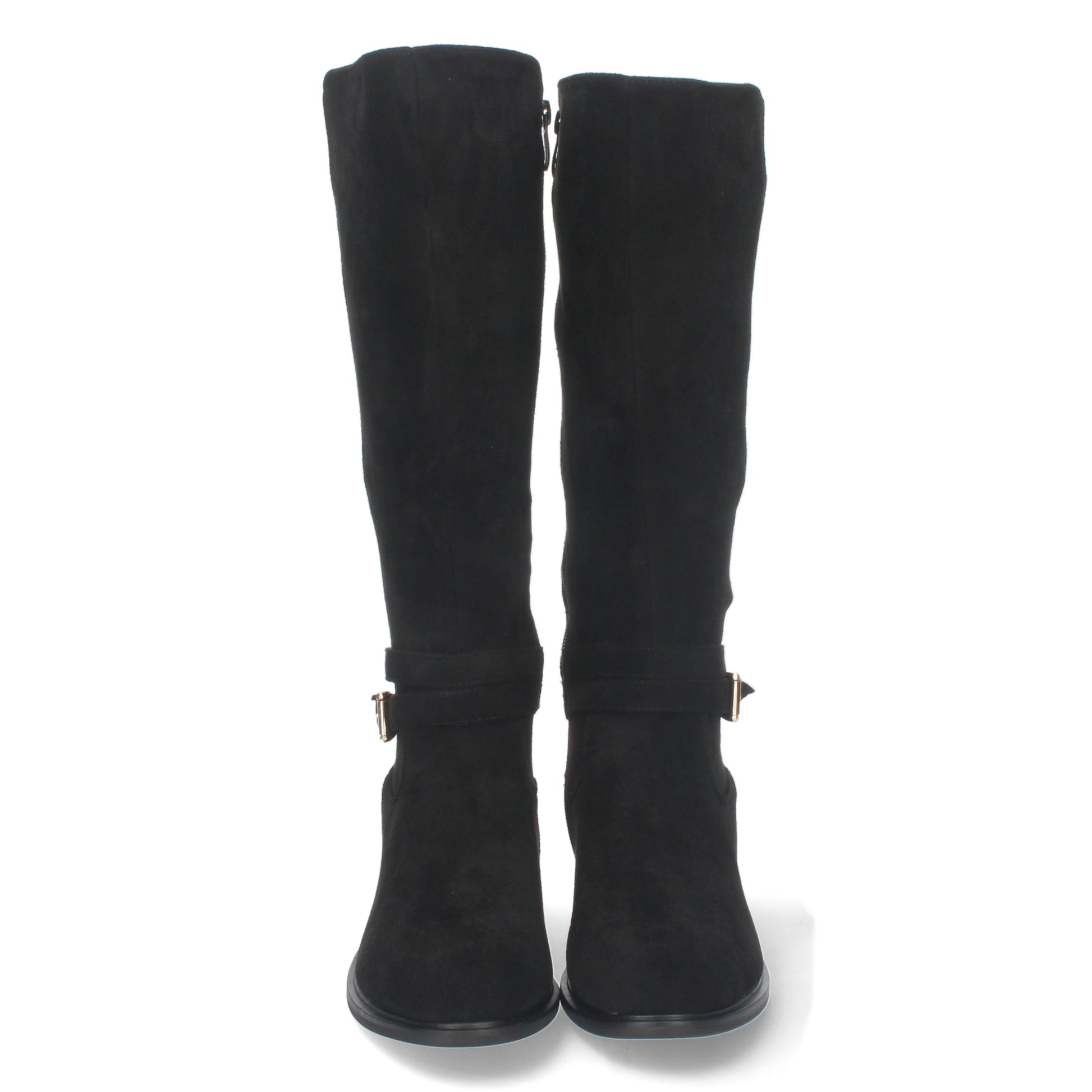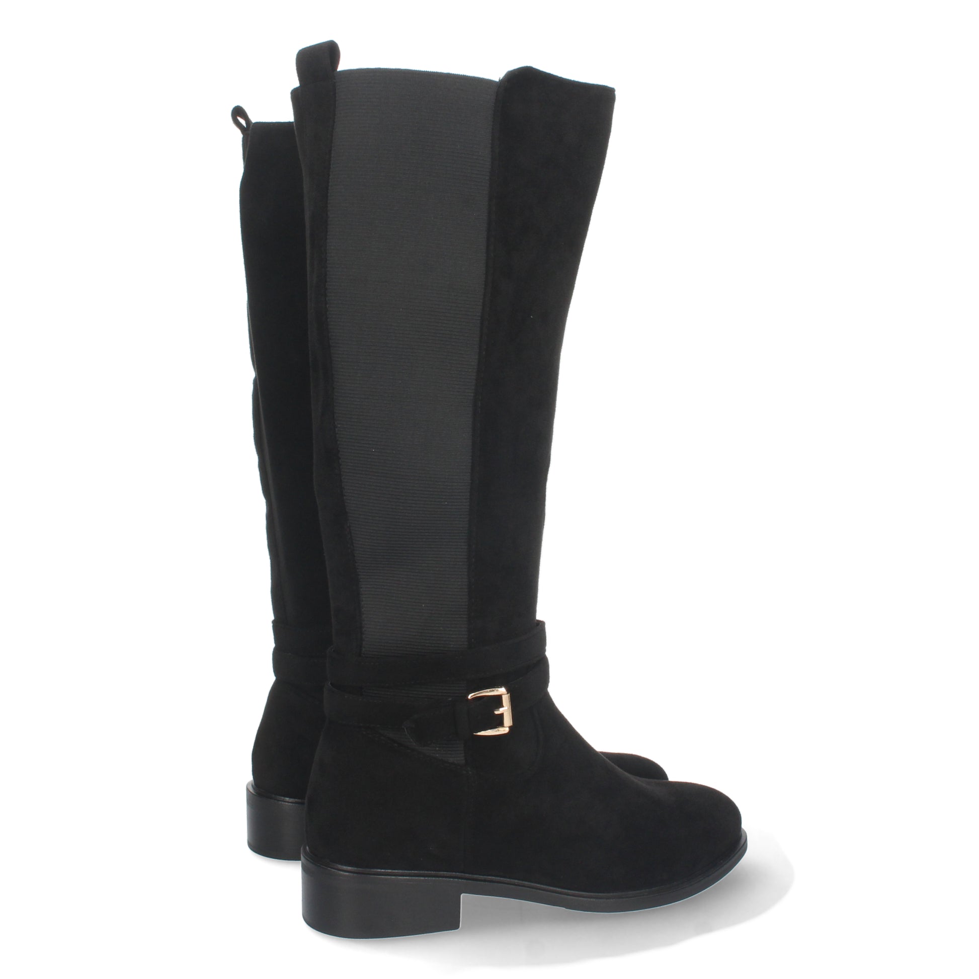 Bota de Tacon Bajo para Mujer Comoda Elástico en el Gemelo Correa con Hebilla y Cierre de Cremallera Otoño Invierno