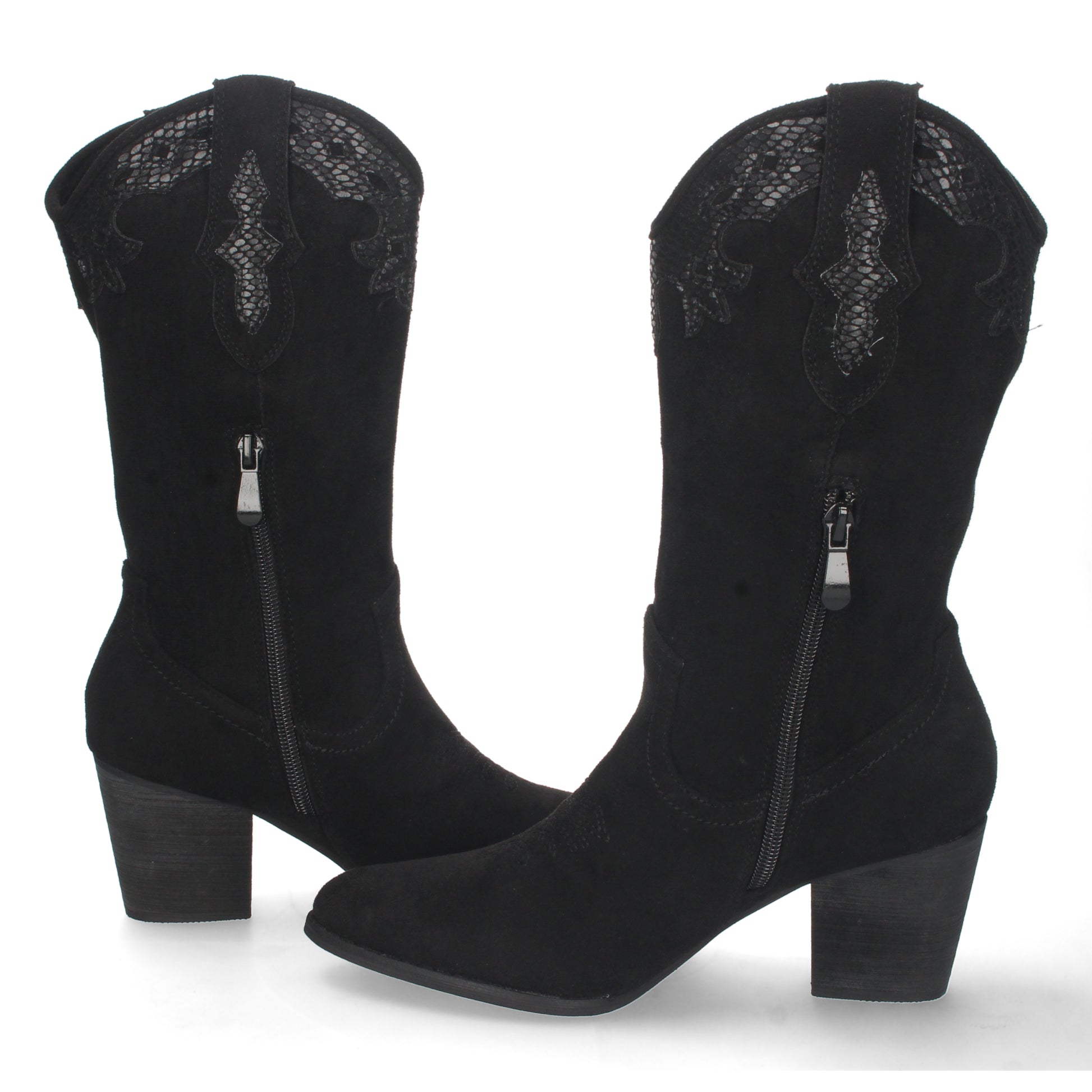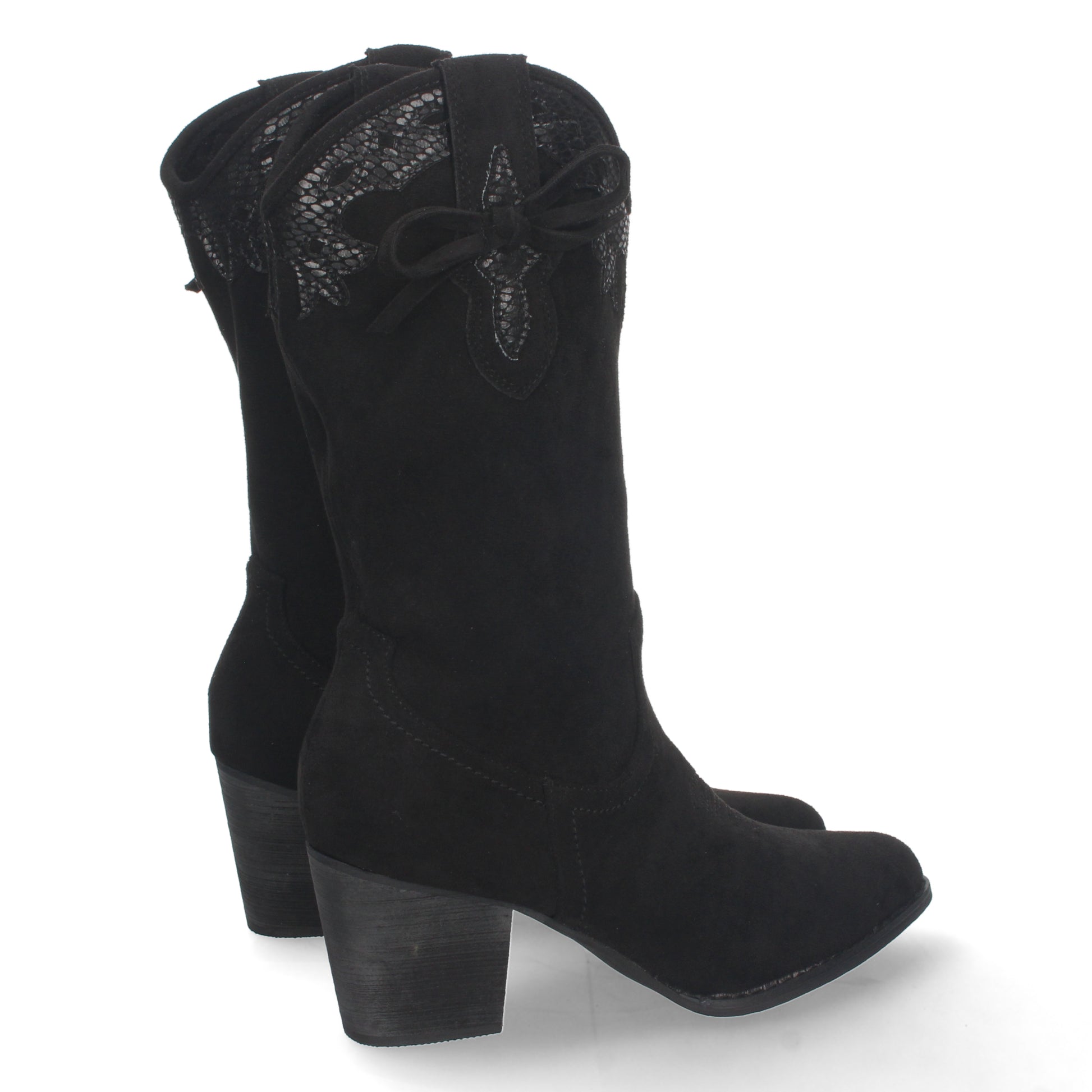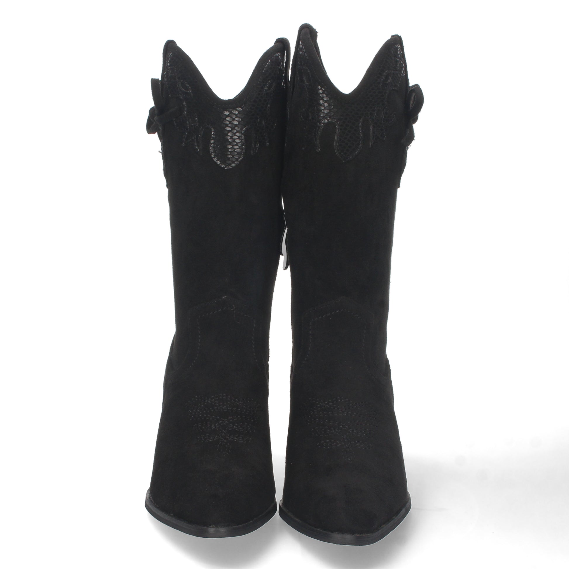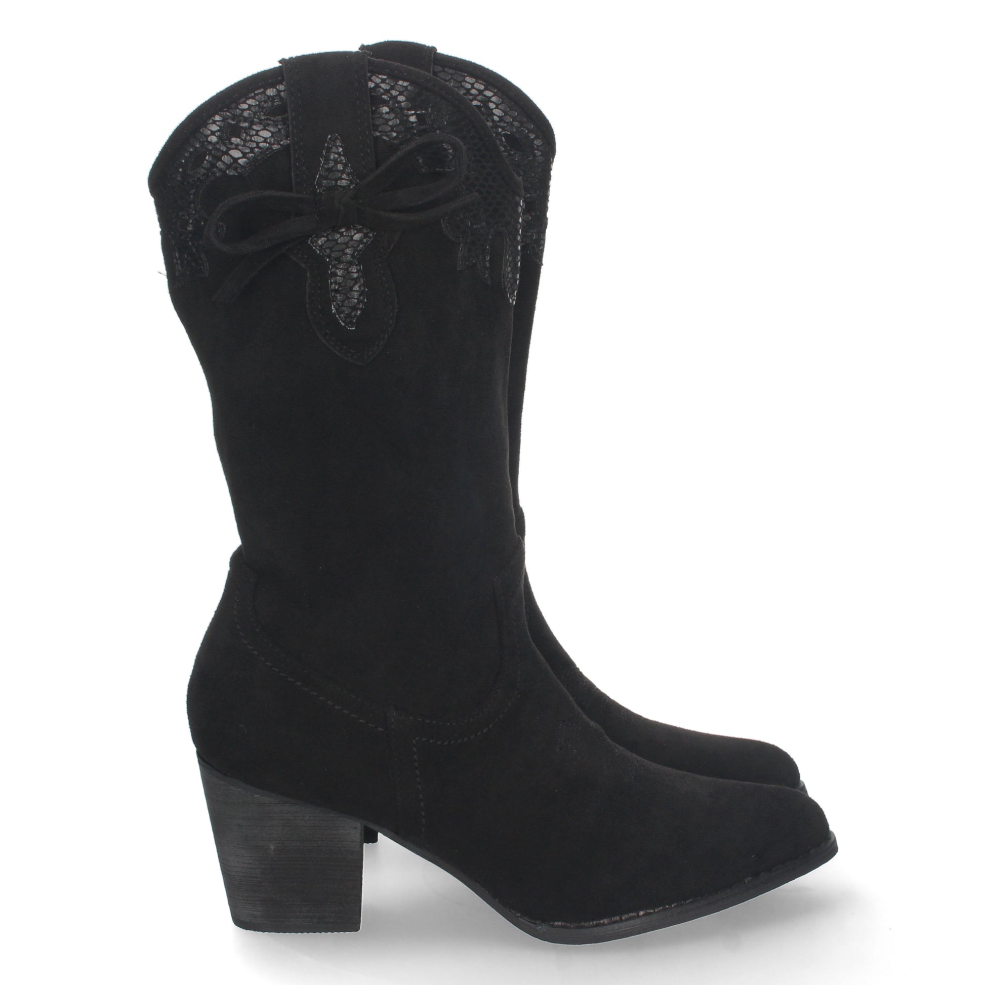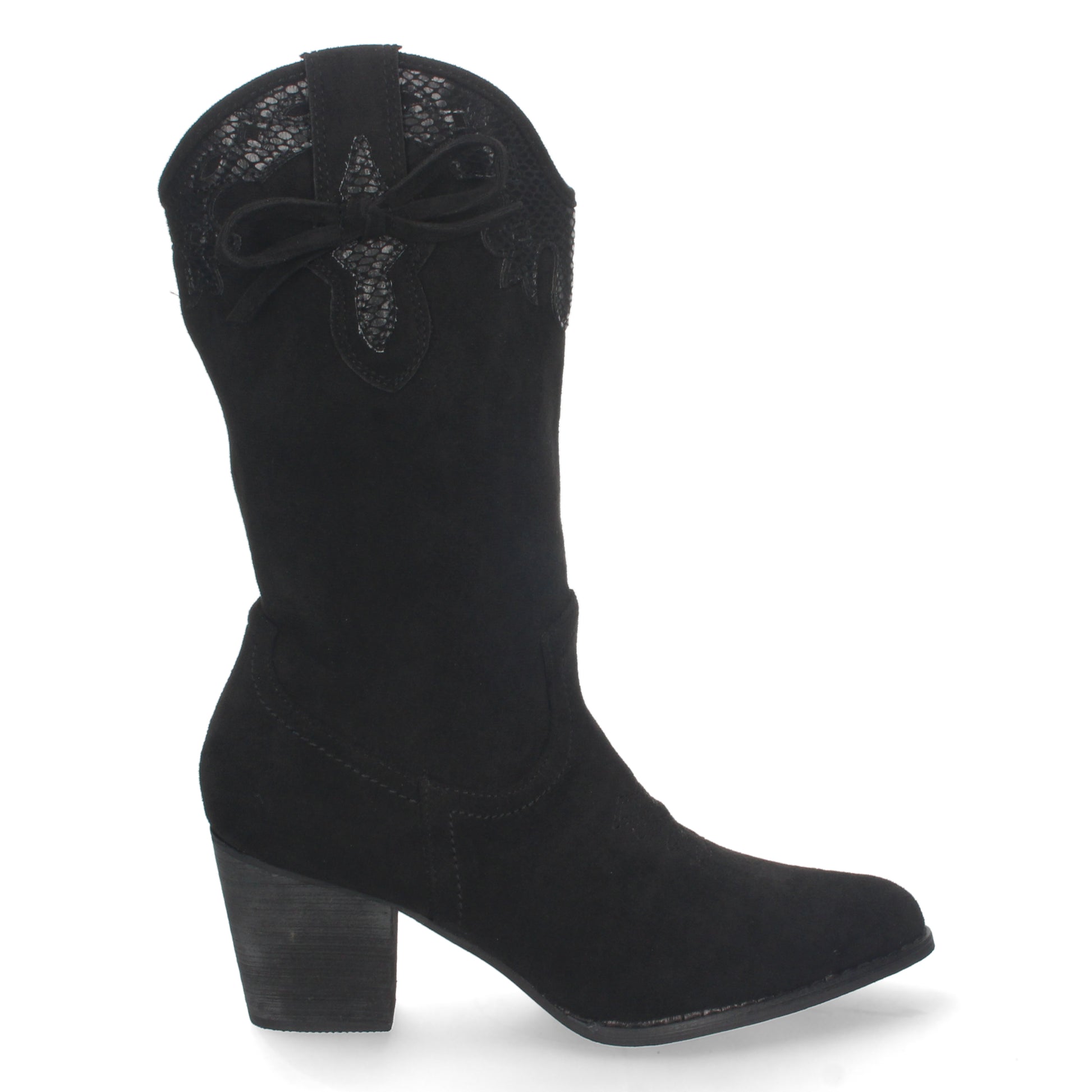 Bota de Tacon para Mujer con Punta Fina Grabado y Lazo en la Caña y Cierre de Cremallera Otoño Invierno
