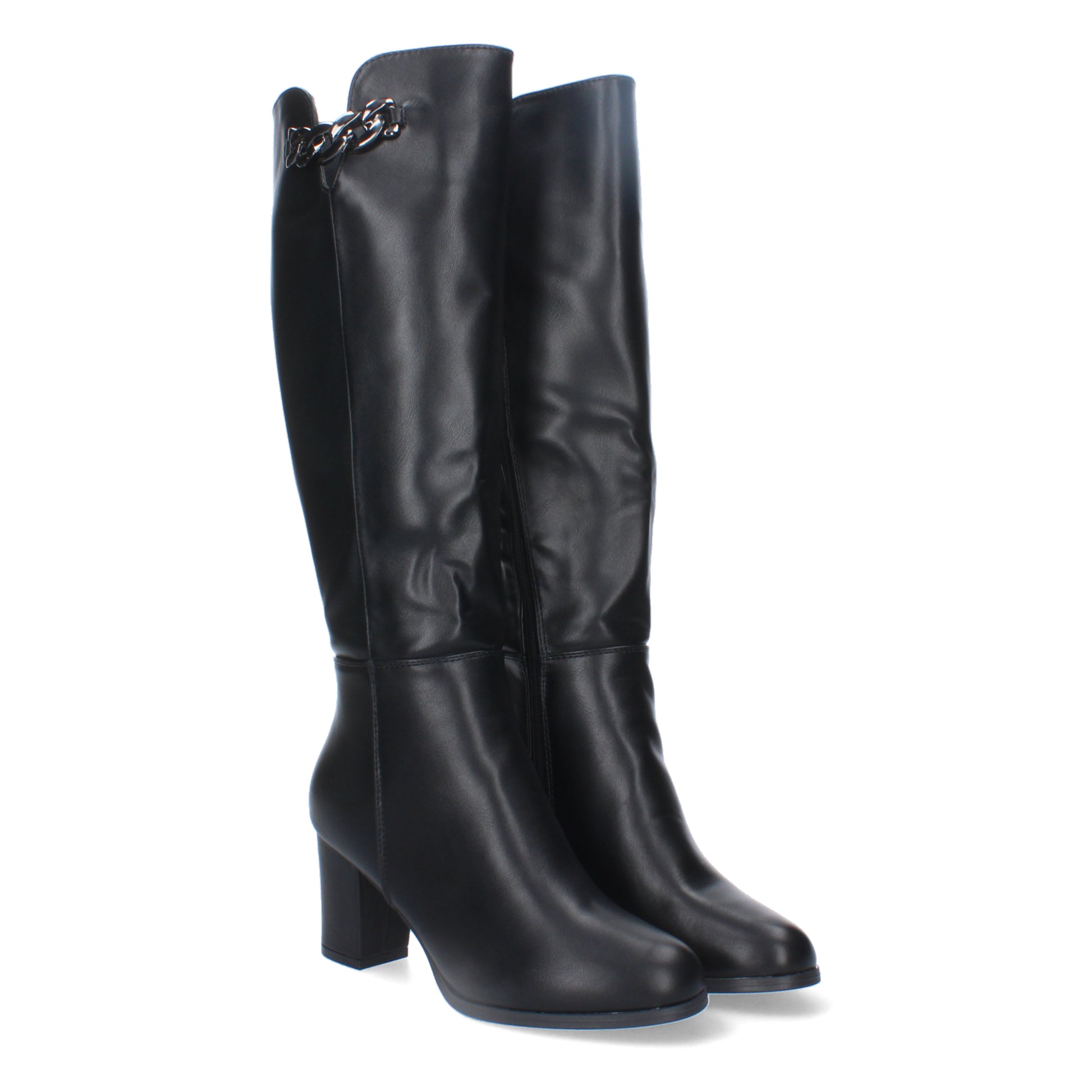 Bota de Tacon Ancho para Mujer punta redonda adorno metalico en caña Cierre de Cremallera Otoño Invierno