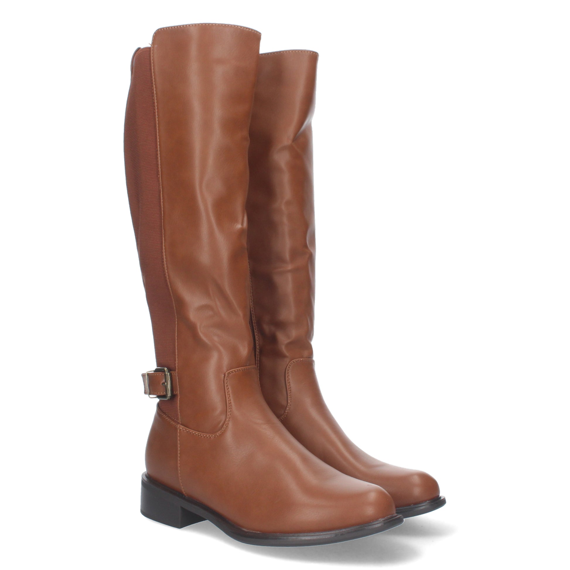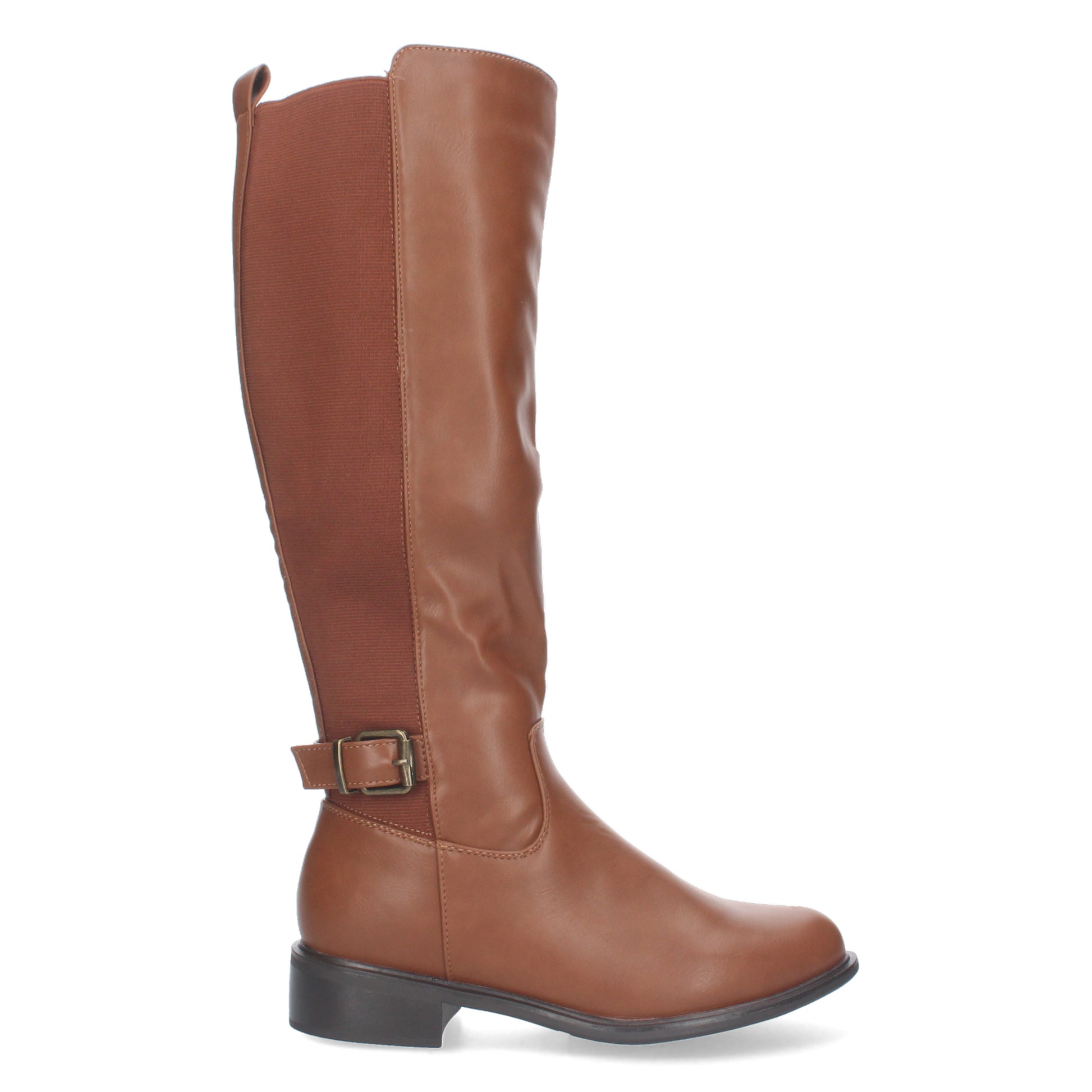 Bota Lisa de Tacón Bajo con Cierre de Cremallera y Adorno de Hebilla en el Tal�n. Cañade 37cm