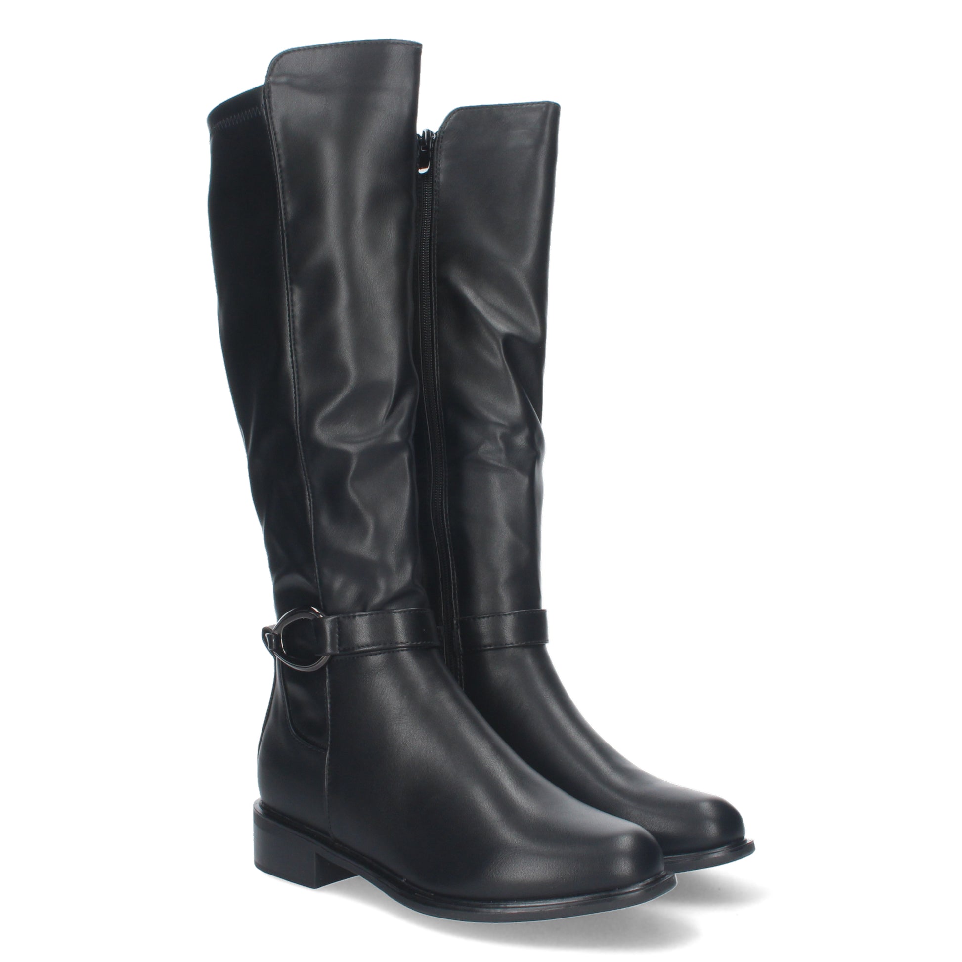 Bota Lisa de Tacón Bajo con Cierre de Cremallera y Adorno de Hebilla en el Tal�n. Cañade 38'5cm. Ideales para Otoño e Invierno
