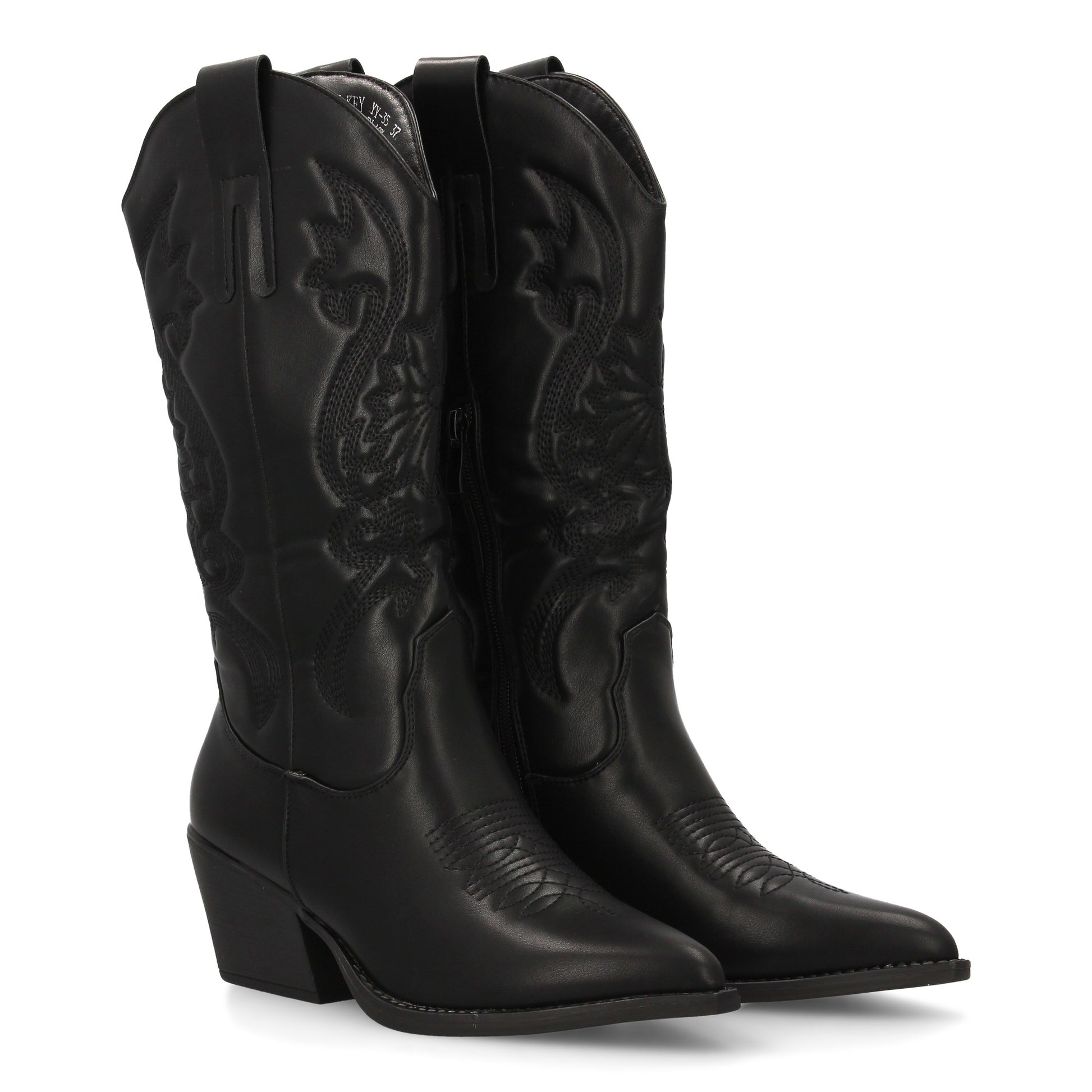 Bota cowboy de caña alta con bordados para mujer. tacón medio y punta fina est
