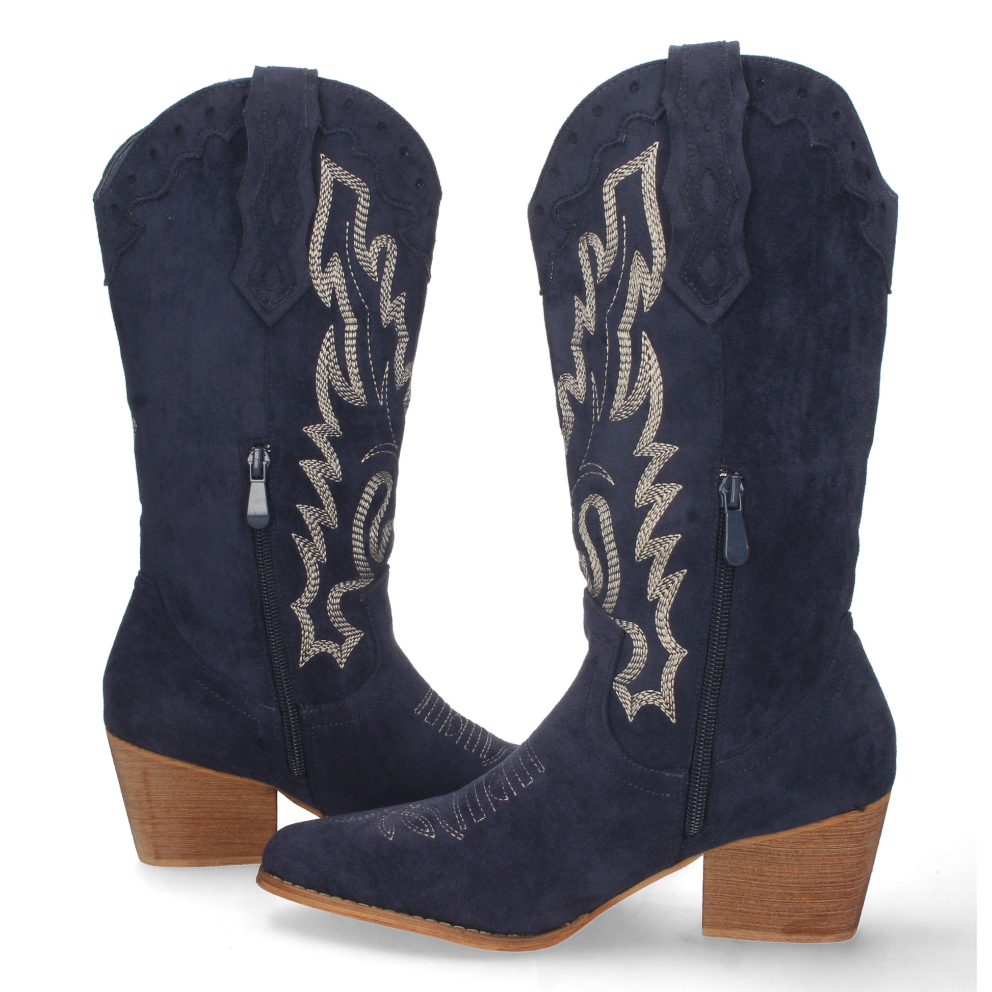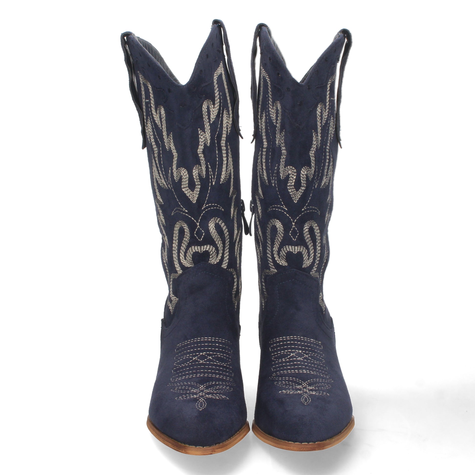 Bota Campera con Tacon para Mujer Comoda con Bordado en caña y Cierre de Cremallera otoño Invierno