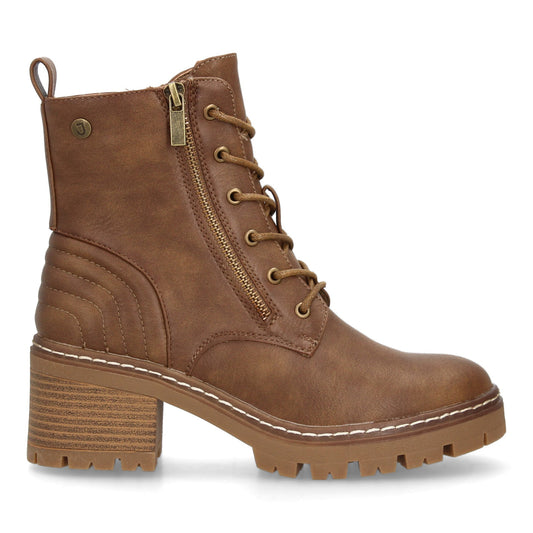Botín de mujer estilo militar con cierre de cordones y cremallera lateral q