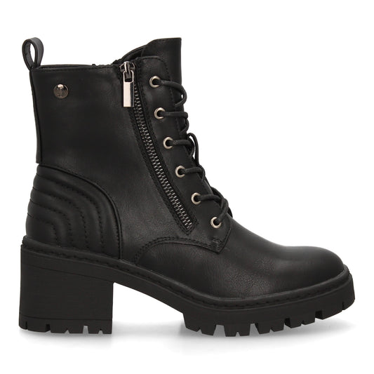 Botín de mujer estilo biker con caña media y cierre lateral de cremallera.